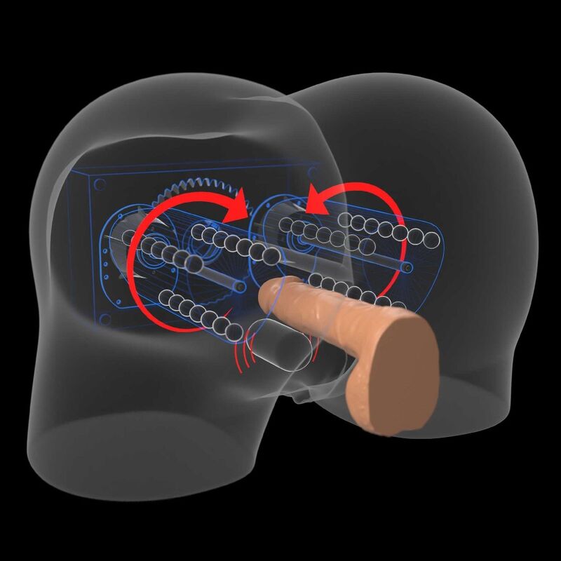 - Dual Rotating Motors: Each cheek features a mega-powerful rotating motor so your penis gets a massage from both sides at the same time! Powered by a 24V adapter, each motor provides unparalleled massage power that will leave your dry penis.